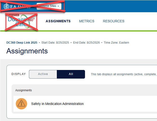 Do not attempt to access Dosage Calc 360 assignments via the FA Davis website, because doing so will prevent your work from being recorded.
